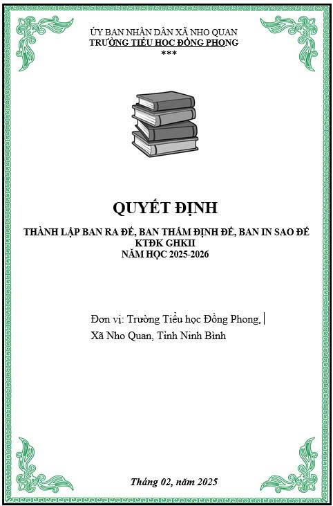 QUYẾT ĐỊNH THÀNH LẬP BAN RA ĐỀ, BAN THẨM ĐỊNH ĐỀ, BAN IN SAO ĐỀ KTĐK GHKII NĂM HỌC 2025 – 2026