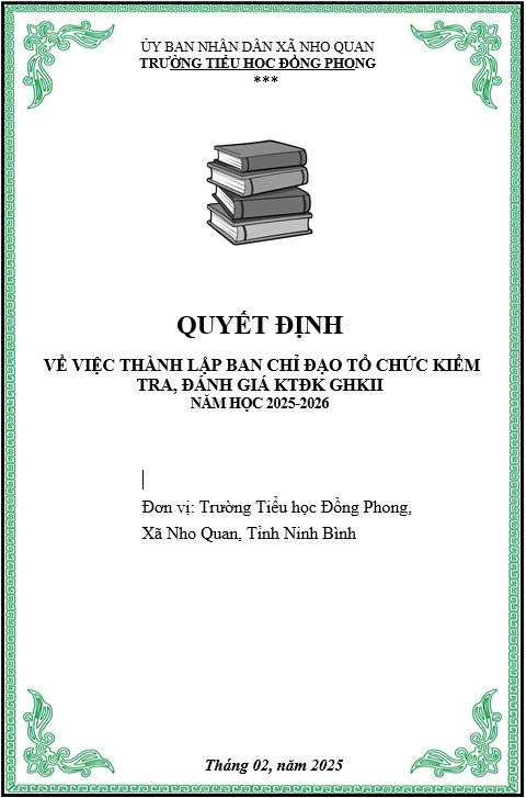 QUYẾT ĐỊNH VỀ VIỆC THÀNH LẬP BAN CHỈ ĐẠO TỔ CHỨC KIỂM TRA, ĐÁNH GIÁ KTĐK GHKII NĂM HỌC 2025 – 2026